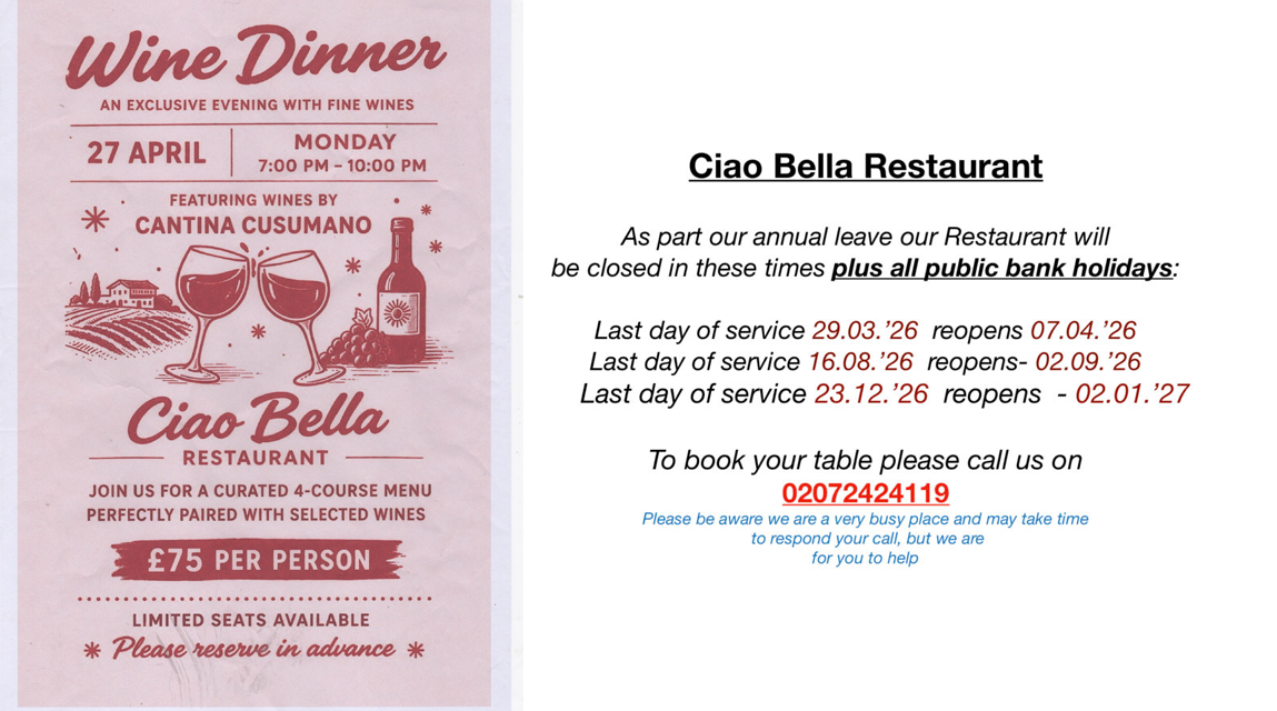 Ciao Bella’s bright history started in 1983 when Ciao Bella opened for the first time in the ciao bella history 1 heart of Bloomsbury, already a central London fashionable residential area.